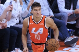 快船球员博格达诺维奇本场比赛替补出场在进攻端效率非常不错,外线三分很准,防守端也很积极多次抢断。