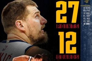 随后,掘金官方又修正了约基奇的数据,为27分12篮板10助攻。
