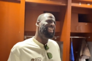 赛后,追梦接受了记者采访。谈到自己在比赛中和球迷发生口角,他说道:“他一直称我是女人,真是搞笑,他一直叫我女人。”