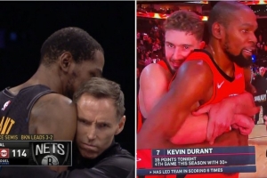 杜兰特接受采访遭申京熊抱!申京:玛德法克 我们就是这样赢球的