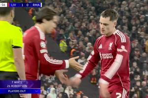 体育资讯11月05日讯 欧冠第4轮利物浦vs皇马第89分钟,利物浦再次做出2个换人调整,维尔茨、罗伯逊被换下,凯尔凯兹、基耶萨替补登场。