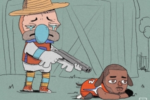 注:该球迷画了很多快船输球后吉祥物颓废的搞笑漫画,快船每输一场,他就画了幅,今天的插图都是他画的。