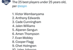 ESPN评选的25岁以下的最佳球员排名,大家觉得呢?