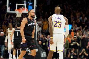 狄龙起身后,撞击詹姆斯。狄龙技术犯规,遭驱逐出场