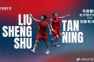 体育资讯12月15日讯 2025年世界羽联年度最佳运动员获奖名单公布,刘圣书/谭宁当选年度最佳女子双打组合。