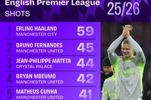 本赛季英超射门+射正榜:哈兰德同时领跑,B费、姆伯莫在列