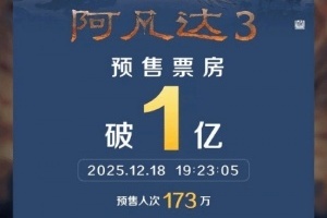 新浪微博消息,据灯塔专业版实时数据,上映前1天,《阿凡达3》预售总票房突破1亿,预售人次达173万人。