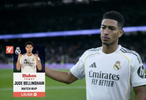 西甲第17轮,皇家马德里主场2-0击败塞维利亚,此役打入一球的贝林厄姆当选西甲官方全场最佳球员。