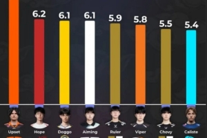 但这算什么大成就吗?这种数据只有在队伍完全统治比赛的时候才有含金量。FNC在自家联赛啥也没赢,FirstStand和MSI都没进,然后去世界赛直接原地爆炸(不知道这里有没有把EWC算进去)。甚至Hope能上榜我觉得都有点不对劲,跟Aiming的情况差不多,不过至少Hope打得还行,Caliste出现在这也是怪怪的。这榜单里唯一值得吹的只有Doggo、Ruler、Chovy和Viper。CFO和GenG在自家赛区那是统治级的,所以他们的选手能在保持稳定的同时疯狂Carry,这确实很强。Viper简直像个怪物,HLE这一年也很猛。