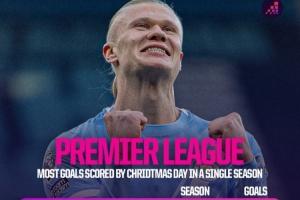英超单赛季圣诞节前历史射手榜:哈兰德、苏牙、科尔19球并列第1
