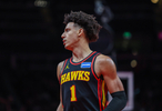 老鹰球星杰伦·约翰逊上半场出战18分半钟,10投6中(三分3中1)、罚球2中1,贡献14分7篮板7助攻1盖帽的全能数据,正负值+9。