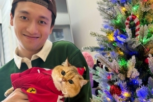 在个人微博,周冠宇晒出与爱猫“玉米粒”的合照,并配文:玉米粒的新衣!Happy Xmas~🎄。从照片看,玉米粒穿了一件法拉利队服。