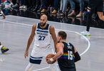 今天戈贝尔打了34分钟六犯离场,他拿到9分12篮板6盖帽,正负值+18。他在场的34分钟,森林狼赢了18分。而他不在场的19分钟,森林狼输了22分。