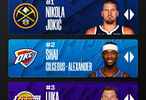 NBA官网更新MVP榜:约基奇继续排名第一,SGA、东契奇排二三位