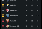 【预备队积分榜】2025-26赛季#意甲# 预备队联赛第18轮积分榜: