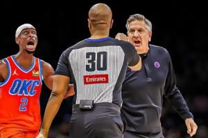 在那一瞬间之前,雷霆的战绩是25胜2负,在那之后,雷霆5胜5负(包括当场比赛),并且,在最近的9场比赛中,雷霆的场均罚球出手数排名联盟倒数第五(总计则是排联盟第18)!