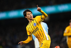 英超第21轮,布莱顿客场对阵曼城,下半场三笘薰破门为布莱顿扳平比分,成为第二位在英超对阵曼城进球的日本球员。