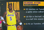 据统计,在这场比赛中,艾顿全场触球53次,创下自詹姆斯赛季首秀以来的单场最高纪录。